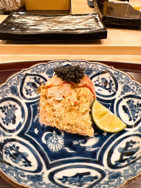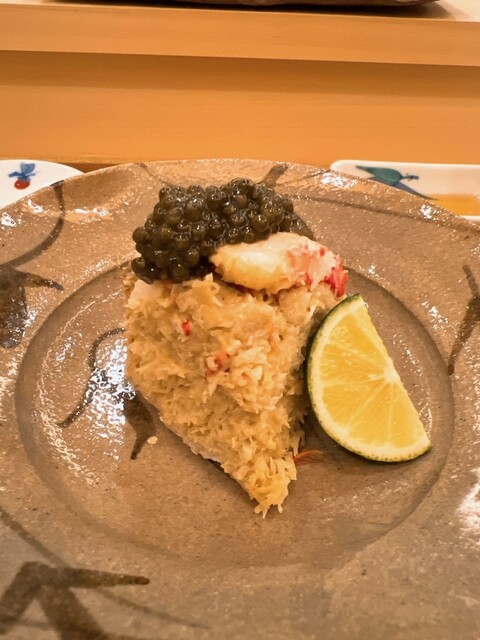 スペシャリテの毛蟹ほぐし身キャビアから舌鼓。握りも抜群でネタもそうですが、シャリの感じが好み。