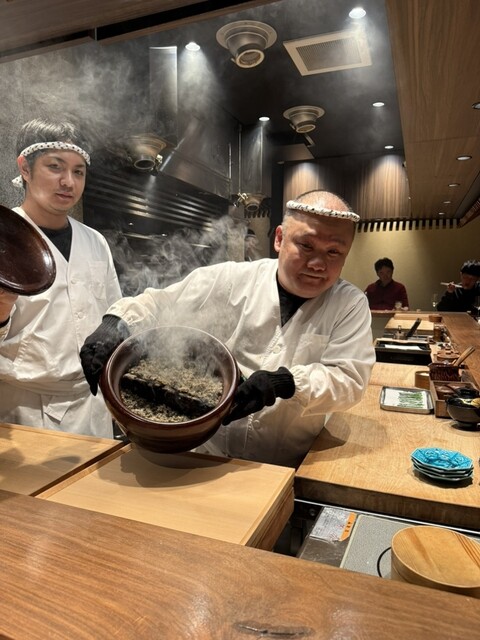 百合根の白和えで箸休めからの、いよいよシメの薪ご飯のご登場。
