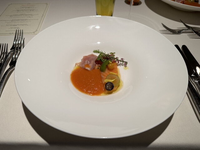 ワインは料理に合うようソムリエさんにチョイスしてもらったグラスワインを。これも料理とよく合ってました。