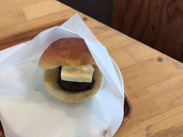 食べると、潰されたあんことバターが広がって、ちょうどいい!