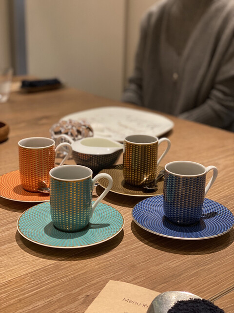 コーヒーの器も更に美しい。お行儀悪いけど並べて撮ってしまった!小菓子のチョコレートを撮るのを忘れてしまったが、このトリュフチョコも絶品でした。