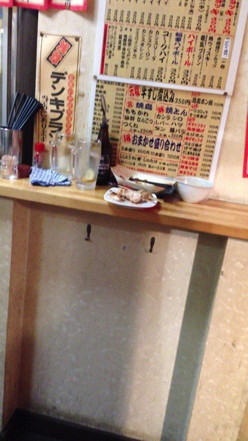 ほとんどのお客さんが入るなり「ダブルね」と注文。ダブルとはダブル晩酌セットの略で、飲み物なんでも2杯+焼き鳥5本+枝豆+牛スジ煮で1380円というもの。これで大体出来上がっちゃいます。
