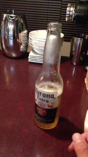 先客2組。多分常連さん?店の人との会話がはずんでいました。益子のインテリさんて感じの客層。お酒飲んでない。でもぼくは飲みます。飲みに来たんだし。ってことでコロナビールから。やっぱ夏だしコロナいいよね!