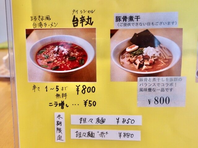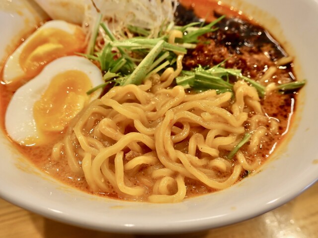 「冬季限定 坦々麺”赤"」があったので茹で玉子を追加して注文です。