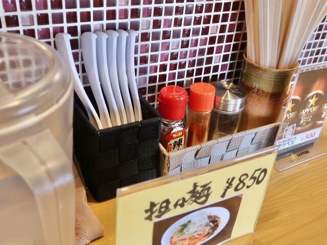 ドンブリを覗くと、実に綺麗なお顔の坦々麺。スープは胡麻風味がバッチリ効いているタイプで、辛味も柔らかです。女将が出してくれた山椒パウダーをササっと掛けると一層と中華的な風味になりました。