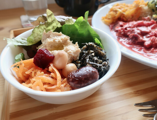 野菜サラダの具材は、サラダ菜・人参・ビーツ・牛蒡・ひじき・大豆・大豆のマリネ。これも、野菜そのものが美味しいのでアッと言う間に空に。