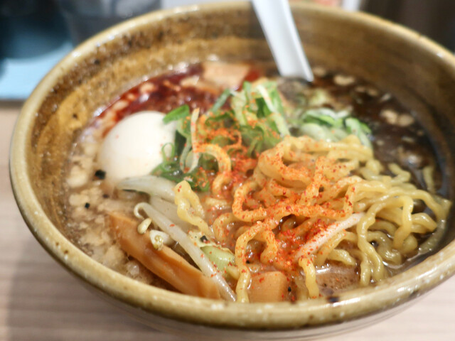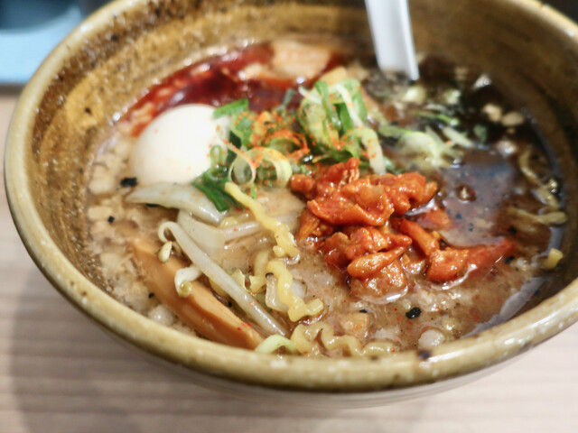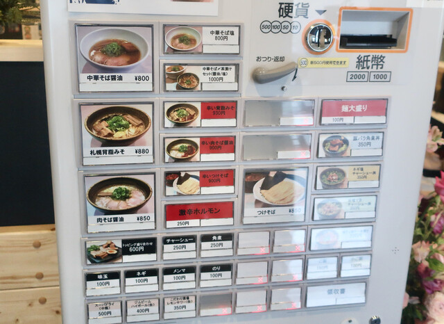 券売機で手に入れたのは「辛い背脂みそ」に味玉と、前回うっかり忘れた「激辛ホルモン」。