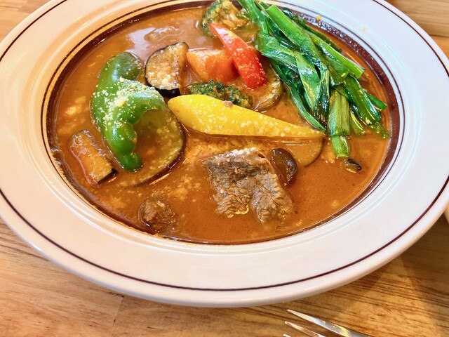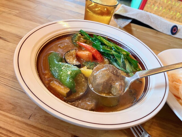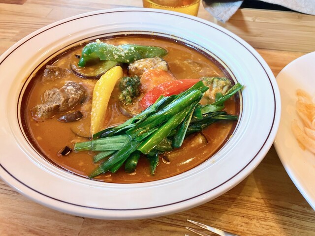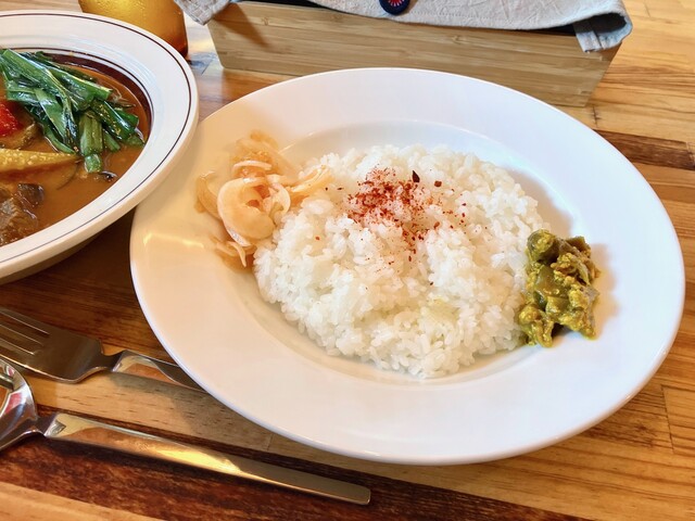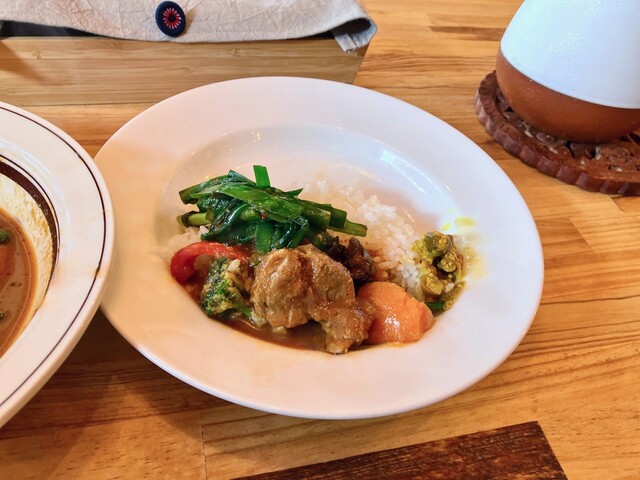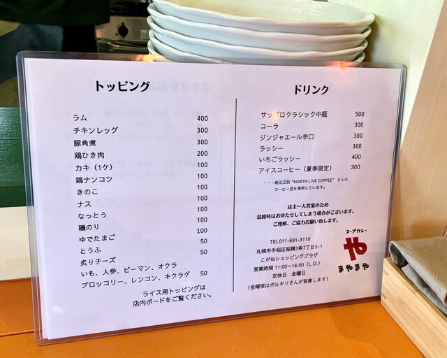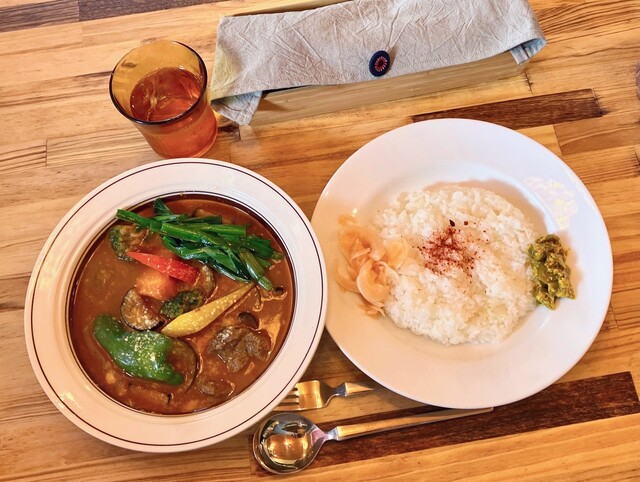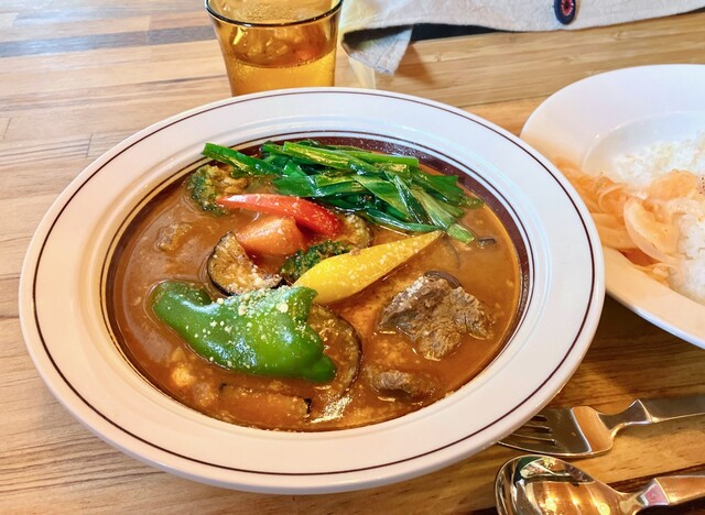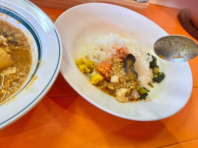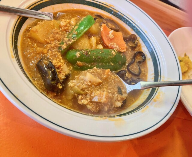 スープカレー『やまやまや』と手打ち蕎麦『喜心庵』、隣り合うお店のどちらに入ろうか、運転しながら到着寸前まで迷っていたが、暖簾を潜ったのは前者だった。フォロワーさんがここのカレーを美味しそうに食べていたのが決め手だった!
