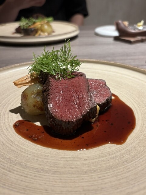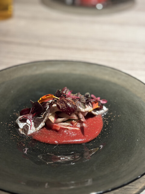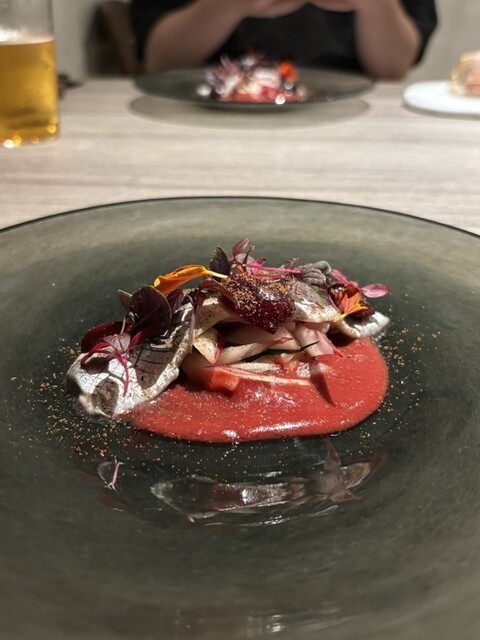 血を使ってるってことは結構えぐみが強いのかという印象があったんですが、ものすごく洗練されていて、濃厚なのに嫌味や雑味がなくアミューズから赤ワインがいただきたくなる!