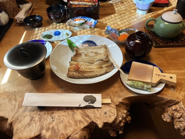 今年も最後に友栄、と思って来店、出足が遅くて到着時には大行列。席はどうしますか?と、そうだここら余分に払っても個室が早いと思い、個室をお願いしました。待つ間、箱根の山を一走りして大観山で一休み、40分で戻ってくるとすぐに呼ばれて、2回の個室にご案内!ご覧の豪華な内装の完全個室で落ち着きます。家内の鰻重をら少しいただきましたら、いつも通り美味しい‼️でたまにはと、白焼定食を頼みましたが、こちらは私の好みではありません、白焼は「わたべ」と思いを残して帰途についたのでした…