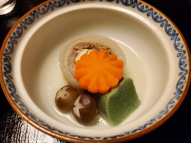 すったて汁は大豆をすりおろして汁仕立てにしたもので、本来かなりざらざらしたものらしいが、こちらのは御主人が工夫をこらし喉越しよく仕上げている