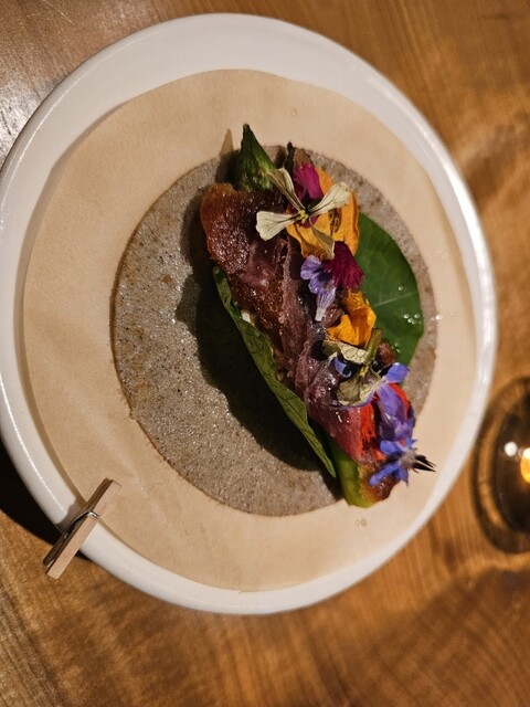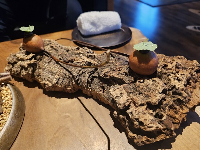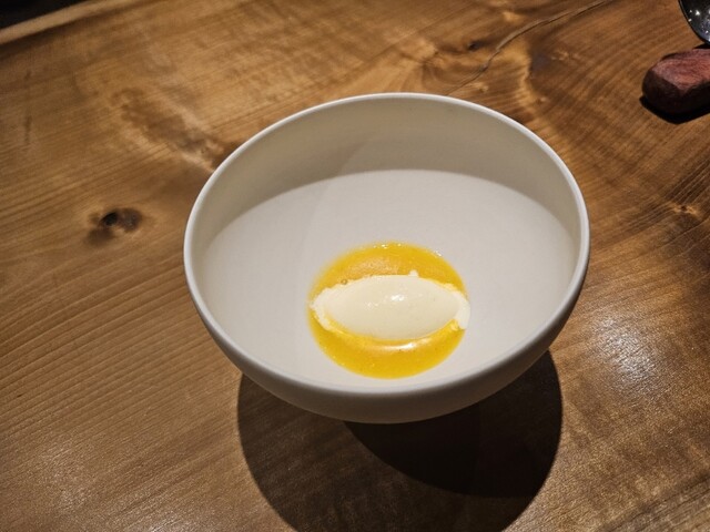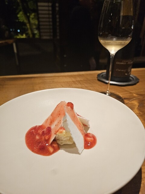 友人がノンアルペアリングにしたので、少しずつ味見させてもらいながら楽しみました。以前フロリレージュで経験したノンアルペアリングが個人的に長らく一番でしたが、こちらも甲乙つけがたいくらいよかったです。アルコールペアリングも秀逸で、レアなやつも織りまぜつつ、料理にも合っておりました。