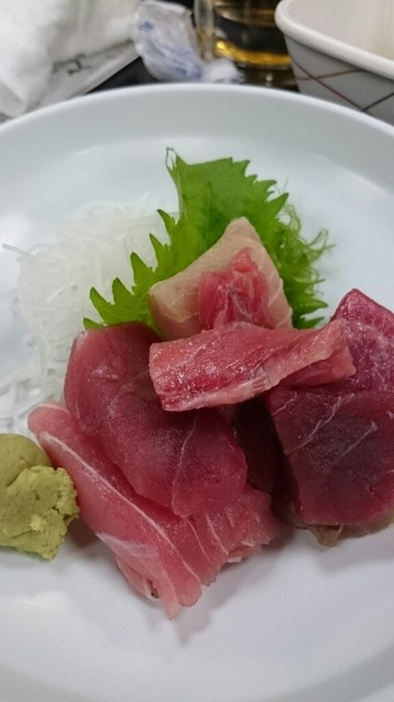 チューハイとクジラベーコン、めばるの煮付け、マグロぶつ、唐揚げ、ほっけ等を発注。