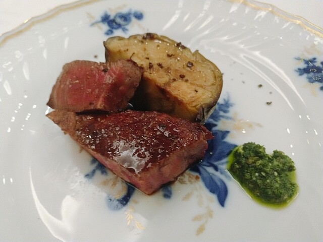 ●田村牛の牛フィレ、賀茂茄子、サルサヴェルデ