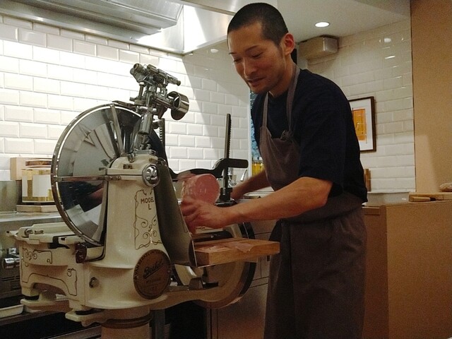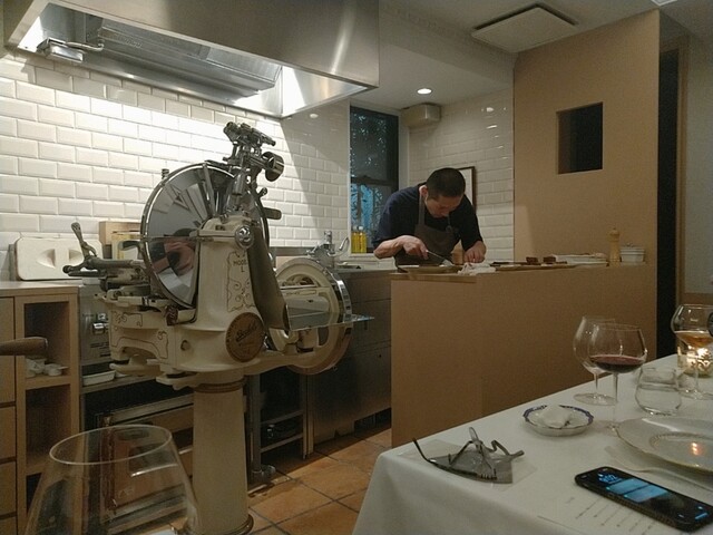6席のみのこちらのレストランは生ハム工場?にテーブルがあるといった感じで広くはないのですが
