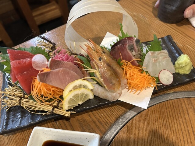 刺身盛合せ(マグロ、鰤、甘エビ、カツオ、タイ)