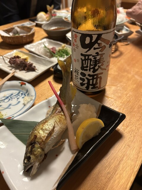 料理は写真の他に焼き鳥3種類頼んで、生ビール三杯、日本酒四合瓶一本と生酒一合を6本頼んで、1人10,000円ちょっと。