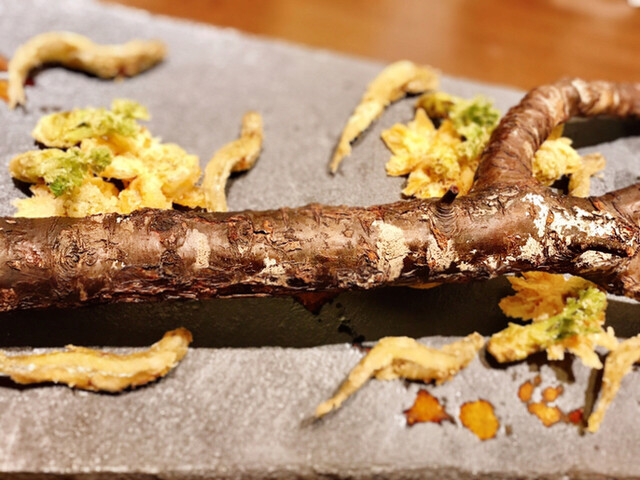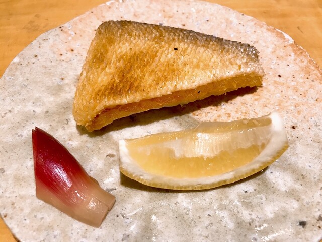 アオリイカは個体が大きかった為、身は厚く、ねっとりとした食感。ぐじも脂が適度に乗っており、鱗もパリパリに焼かれており、ふわっとした身とのコントラストが抜群!タケノコも程よい味付けで木の芽の爽やかな風味が利いており非常においしかったです。