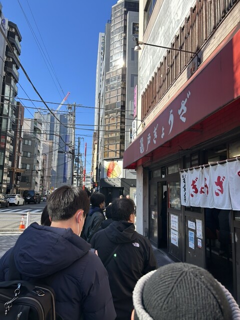錦糸町に買出しの予定があり年の瀬の土曜昼に訪問。時間は11時少し前なるも15人位の行列。餃子とご飯のセットにする人が多く、飲みが無ければ循環は早め、精算は現金の他、PayPay、カードも可。店内はカウンター18席のみ、間隔には余裕はあまりなし。列に並んでいると空いた席に店員さんが誘導してくれるので初心者にも安心。