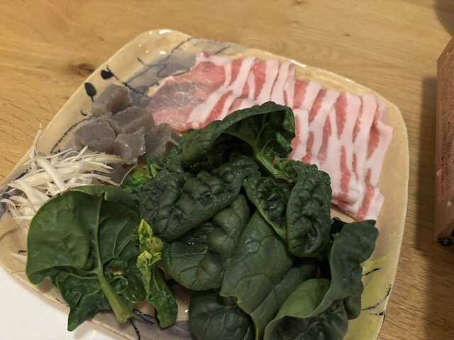お鍋は、ちぢみほうれん草と豚肉のしゃぶしゃぶ。