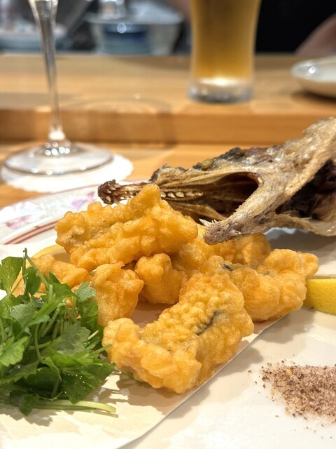 今回はじめていただいたのが"マグロのノド"と"鱧のフリット"
