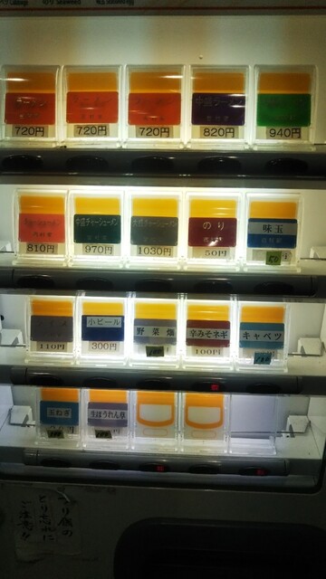 食券を購入後に並ぶということらしい。ラーメン(720円)と味玉(50円)とライス(110円)の食券を購入した。支払いは現金のみだった。