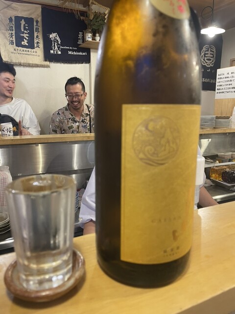 その後「次は辛口でお願いしますっ」と前のめりでお兄さんに伝え、うん、これこれってドンピシャの日本酒が運ばれてくる。中トロお刺身、だし巻き卵もこれまた料亭レベルで大満足。麻婆豆腐は出汁の香りを活かした優しめのお味でした。そして昨今の日本酒ラベルの芸術性の高さに驚き、目も楽しませて頂きました。
