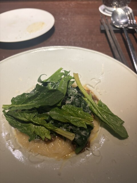神保町駅からほど近くの路地に、ひっそりとある一軒家イタリアン。ダイニングテーブルや個室は2階にあり、一階はカウンターのお店。店員の方もおもてなしの心がある肩肘張らずに伺えるアットホームなお店です。メニューはアラカルトで、食材が書いてあるメニューから選ぶ。目安は前菜から3品、パスタ1.メイン1.デザート1を選ぶと2人で行って程よい量。今夜は生ハム、ボタンエビ、なすを前菜で選び、パスタ類からはリゾット。メインは豚肉をチョイス。デザートは柿。どれも優しい味だけど、素材を楽しむお料理。また行きたいお店です。