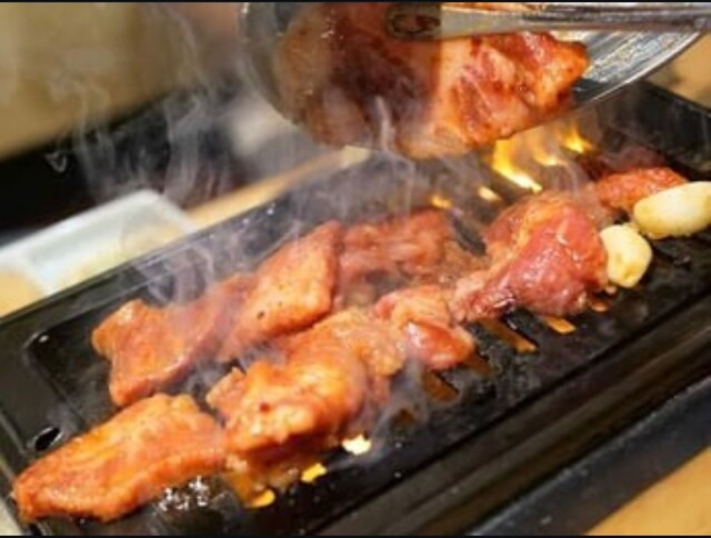 路面から奥へと続く入り口へ。入店すると元気が良い声で迎えてくれます。焼肉のタレが焼けた香りが食欲をそそります。