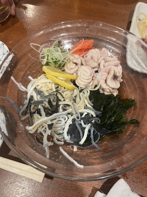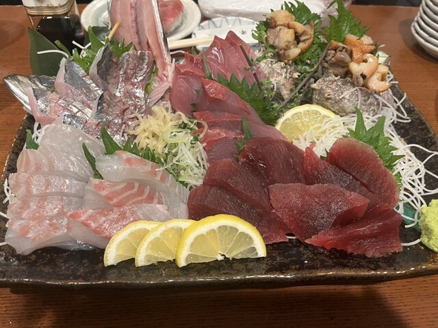 料理は、コースの最初にいきなり握り寿司が出てくるため、良い意味で意表を突かれます。刺身はボリュームがかなりあり見た目にも満足感抜群です。また、ほたるいかのサラダで絶品でした。