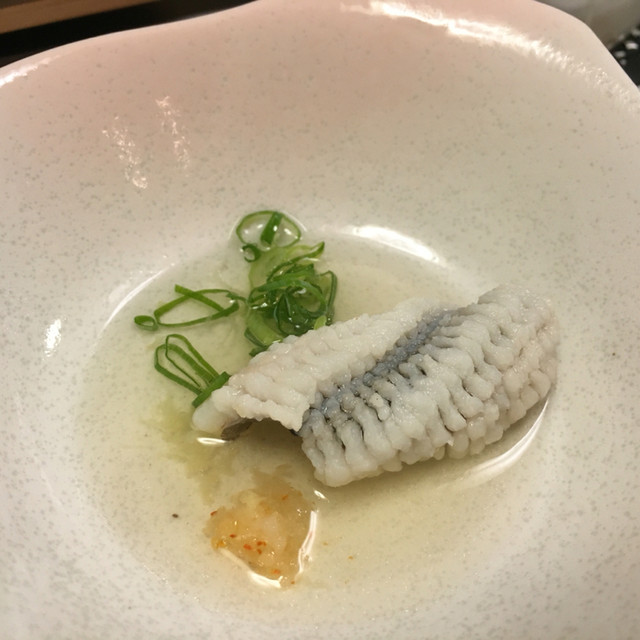今回はこちらのお店に惚れ込んでる上司がメニューをチョイスし、前菜、刺身、お肉、鍋、デザートといつものお店のコースとは少し違う内容にてお願いしました。