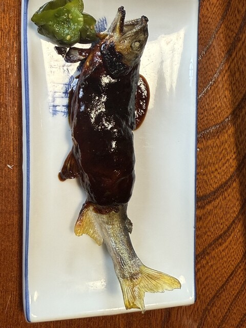 隠れ家中の隠れ家!ここはめちゃくちゃ好きな店だけど今は1日1組か2組しか受け付けていません。鮎、鮎、鮎!これでもかーって鮎!刺身好きにはたまらない鮎のお刺身。塩焼きも頭まで鮎の脂でカリッと!ツウは骨まで食べちゃいます。味噌田楽は、塩焼きよりも焼き時間長く味噌を塗ってからもう一度焼くのがポイント。これで身にまで味噌がしみわたるのです。そして、1番大好き雑炊!沸騰したお湯に生きた鮎をいれて醤油だけで味付けをするというシンプルにも関わらず、鮎の出汁のおかげで深い味わい!