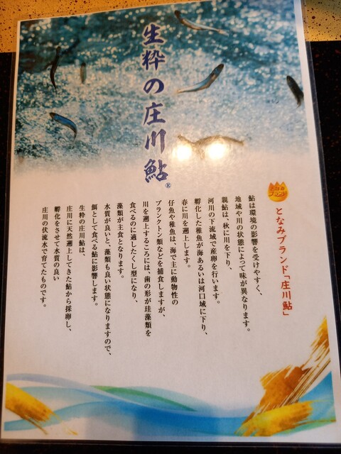 ネットで調べた際にお品書きを見て、「鮎料理(五品) 3,300円」と「鮎の釜飯セット 4,000円」を頼むのを決めていましたが、「鮎料理にはご飯が付いていないがどうしますか」と聞かれ、しばらく悩んで「鮎めし 1,320円」も頼みました。