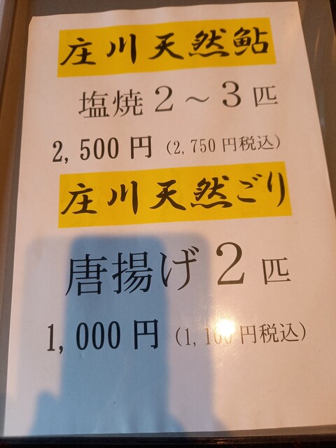 子持ち鮎の塩焼きを先に食べ、ご飯など食べていると店員さんが来て「塩焼きの追加はいかがですか」と聞いてくれました。鮎が全体に小ぶりでもう少し食べられるかと思ったので、1人2尾を追加で頼みました。お品書きには680円~とありましたが、この日の追加の塩焼きは1尾850円でした。