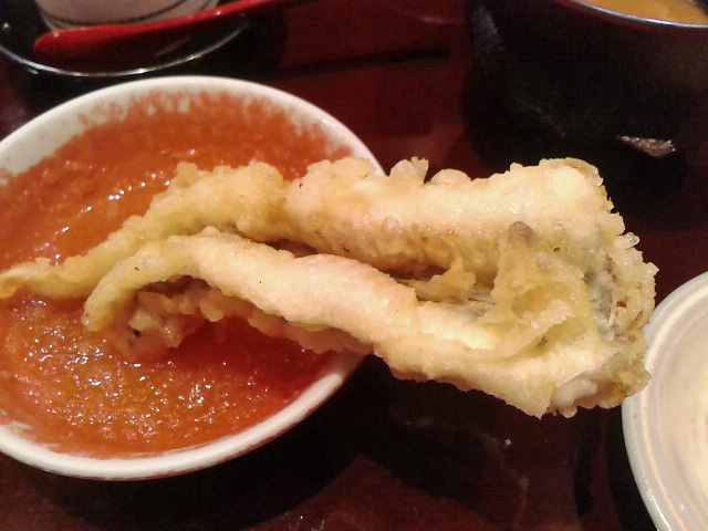 茄子 油に相性の良いナス。天麩羅には外せませんね。揚げたてはべちゃっとしてなくてシャキッとしてますね。