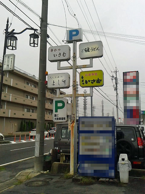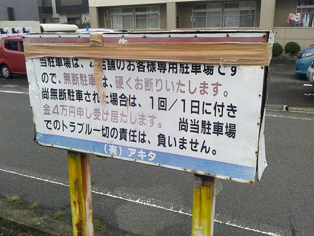 店舗にはちと早く着いちゃいましたw 店舗裏には広い共同駐車場があり、隣の弁当屋さん目当てでしょうか、トラックとかも入って来ます。今愛車のチャレンジャーの調子が悪いので今日も代車のグラチェロです。こいつも意外と大きいので、広い駐車場はありがたいw