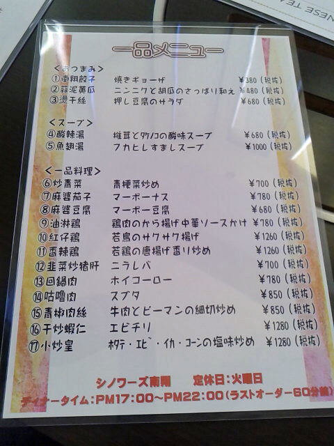 奥さんもアチラの方ですな。時々日本語が片言になります。そぅそぅオーダーをした品を持って来てくれるたびに、「ニーハオ」と声掛けてくれるんですよ。「ニーハオ」は挨拶だと思っていた私にとっちゃ目から鱗ですわ( Д) ゚ ゚