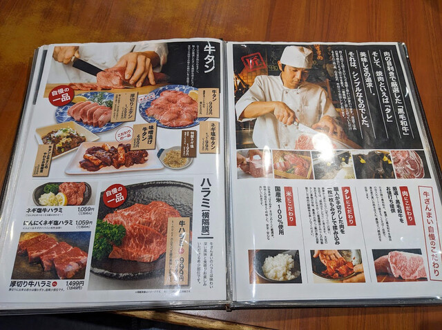 スーパードライ(生中)@659×2、白菜キムチ @439、牛タンと牛スジのやわらか味噌煮 @439、ドリンクバー @351×3、牛タン@1099×3、ごはん(大)@494×2、厚切り上タン@1759×2、飛騨牛カルビ(塩 @989×2、ごはん(小)@274、豚とろカルビ(タレ @549×2、ばかきゅう @329、(ミニ)チョレギサラダ @219、焼肉屋の玉子かけご飯 @549