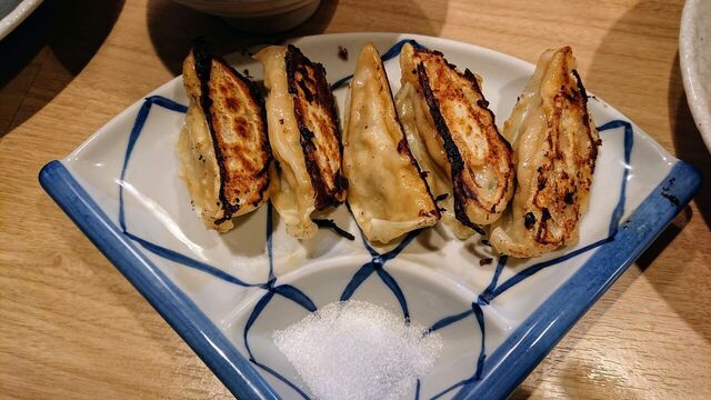 シェアで炙りレア焼豚丼と餃子。