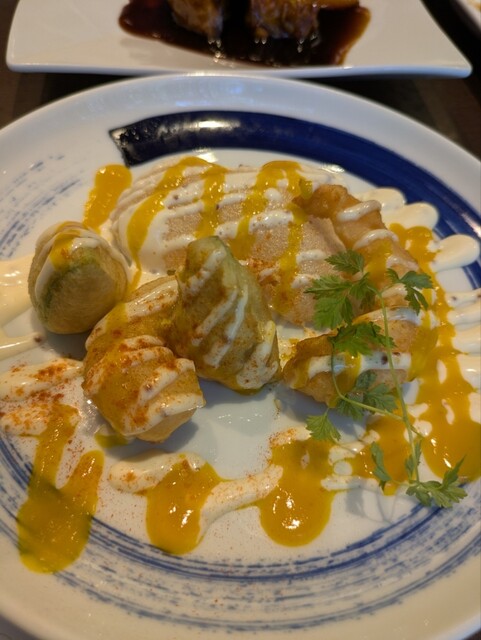 →絶品です。マンゴーマヨソースとスパークリングワインの相性が抜群です。