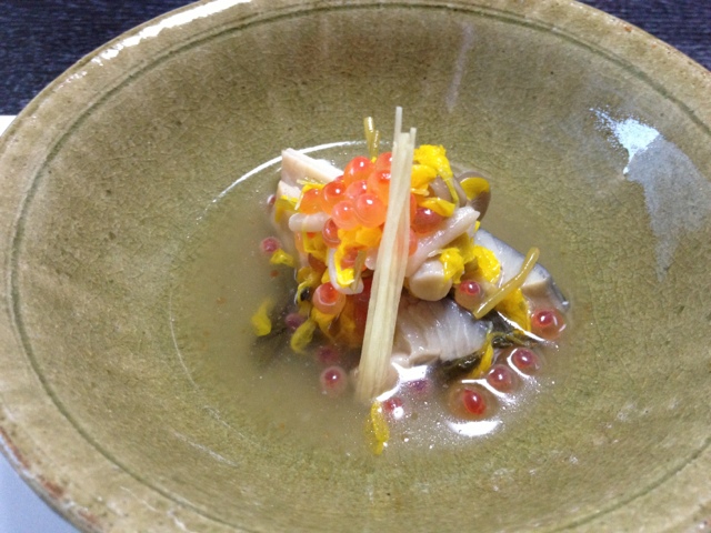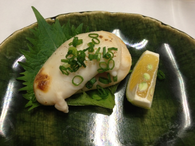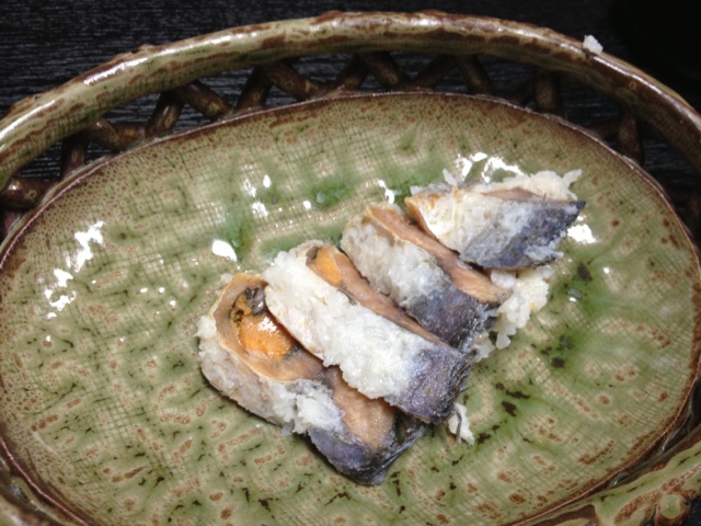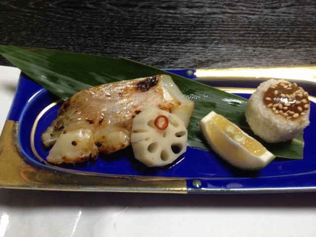 それから今年最初で最後の天然物ね鮎の塩焼きも。身がホクホク、皮もパリッと香ばしい。塩加減も絶妙^ ^うん、これもなかなか良いよ。