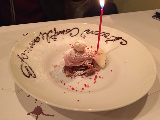 イタリア語でBuon Compleannoと書かれた誕生日プレート。