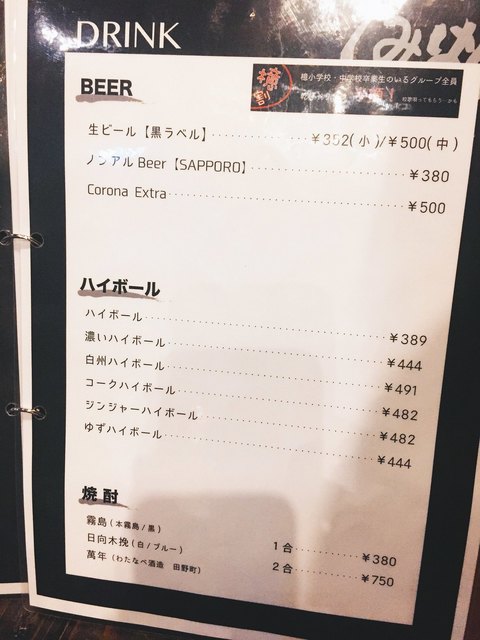 ドリンクメニュー