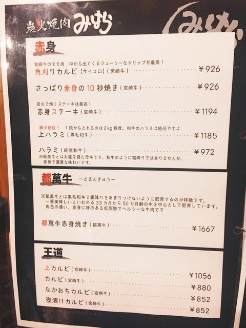 さてカンジンのお味ですが、さすが宮崎牛上カルビ、旨し♡しかも、厚みもみちち好み♡みちは焼肉でも厚みがあるほうが好きなんで、このお店くらいの厚みがジャストヒットだわ。脂身も甘くてクドさがないし、ペロリいけちゃうわね^ ^