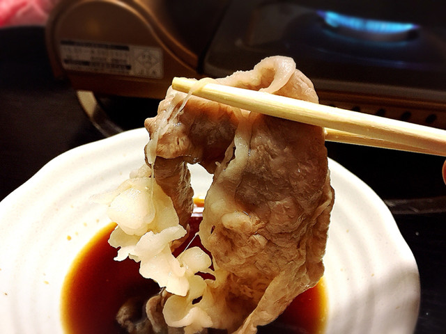 しゃぶしゃぶは見てわかる通り、綺麗なサシの入った宮崎牛ロース。ポン酢→ゴマだれ→おろしポン酢といただいてみました。