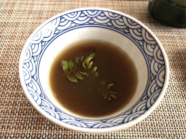 枝豆のようなコクと風味に、蕎麦の甘皮があることで味変して美味。濃口醤油と塩も上質なものを揃えており、特に醤油が相性が良い。