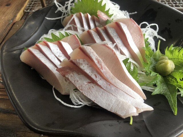 奥様が漁師の娘さんということで、ジビエなのに魚介類も出されるとのこと。今回は東京湾のブリ刺だが専門店の味で驚愕であった。
