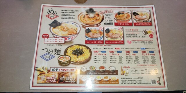 新・手作り焼ギョーザメニュー。夜のみ(H26.11.28撮影)