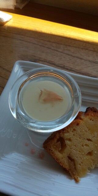 控え目な甘さがある、しっとりとした、重さがある感じの一品ですが、焼き菓子…という、一般的な、もっと乾いたものとは真逆のもので、食べ応えがあります。