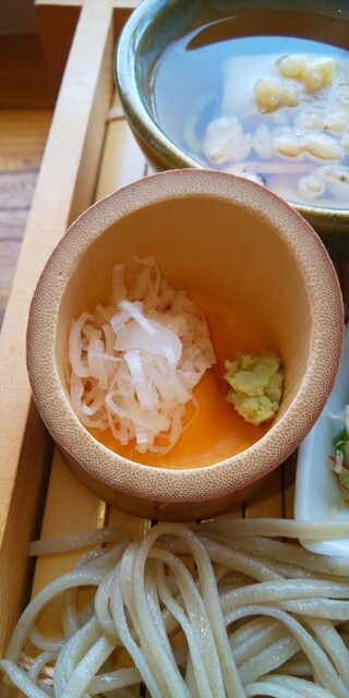 かなり細く刻まれた葱は晒されて。それと本山葵。